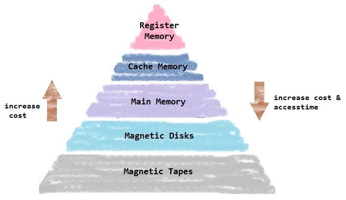한 레벨의 저장장치는 바로 다음 하위 레벨의 저장장치의 캐시 역할을 한다.